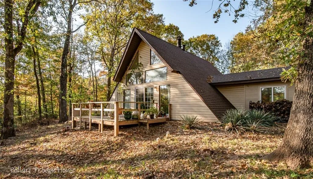 One of a kind, secluded A-Frame home sits on 3 acres. With a pristine year round drinking spring just down Highway 74. Out of City & Rural all you need is solar panels & you can be completely off grid! Schedule a showing today before this is gone. You will enjoy the peace & tranquility offered in this unique location. Great property for weekend getaways, rental/airbnb investment income. Main Road Connects to HWY 71 allowing travel time less than 20 miles to downtown Fayetteville including Nightlife, Dining & Shopping districts.The U of A & Devils Den State Park which boast an 8 acre lake for fishing & boating, cabins, site hookups and horse trails available. Walking Distance (Less than half a mile) to Brentwood Community Park to enjoy Picnic Pavilions & great views of the West Fork White River. Home has been remodeled in the last 2 years, windows replaced, newer roof & HVAC, Kohler propa...