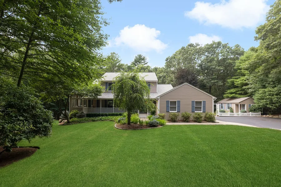 Tucked into a private enclave of single-family homes, this beautiful and meticulously maintained 4 bedroom 4200+ sq. ft. Colonial in Forest Hills Estates is perfectly sited on 3 acres of park-like grounds with mature plantings and a separate 300 sq. ft. artist/yoga studio. The kitchen is large with a center island, extra wide counter area (great for baking!) and opened to the family room with a gas fireplace. There is a walk-in pantry, plenty of cabinets and sliding doors in the kitchen and family rooms that lead out to a large deck area. The dining and living rooms are generously sized with hardwood floors. Walls of of glass in the Florida room bring in the outdoor natural light and beauty. The laundry room with sink is conveniently located on the first floor. The flooring is a mix of tile, hardwoods and carpet with brand-new carpet in the master and one bedroom. The master bath offers...