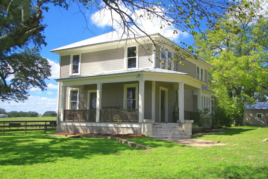 Enjoy life in a small Texas town and unwind! Heres a unique opportunity to own a restored early 1900s two story farmhouse on 3 acres on the edge of historic Burton, Texas. Lovely 4 bedroom 3 bath house has beautifully restored long leaf pine floors, wood plank walls and a metal roof. You will be welcomed home by a lovely wrap around front porch with swing that overlooks a majestic live oak tree. Home has great natural light with plenty of windows and spacious floor plan with 2,679 SF. Great for entertaining with living room and dining area accessed by double french doors. Country kitchen is galley style with plenty of cabinets and bead board wainscoting. Downstairs also includes 2 full bathrooms, office, utility room and guest bedroom. Upstairs are two large bedrooms with closets and master suite with corner shower, claw foot tub and antique vanity cabinet with double sinks. Theres lots...