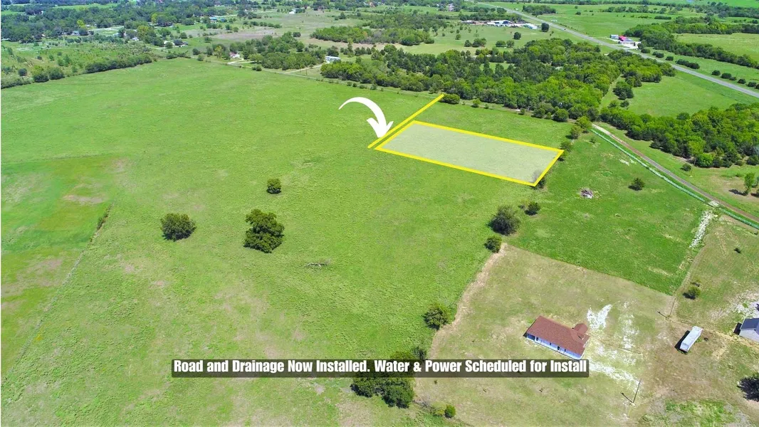 We have paid for the installation of power poles and transformers to run along the road frontage. As a new customer in this development, Oncor will provide a credit of up to $8,400 in pre-paid construction fees to place your secondary poles off the main line and install your meter loop. Under normal circumstances, a secondary pole and meter loop close to the setback line may consume a budget of $2,500 - $3,000. This offers great flexibility to future customers who want to customize the placement of their home. We asked Oncor for an estimate of what eats up a $8,400 budget and the placement of 3 or more secondary poles is a rough limit on the pre-paid budget.