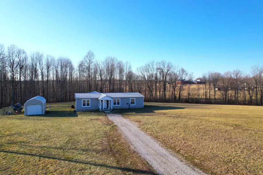 Three bedroom two bath manufactured home with a permanent block foundation sitting on 7+/- acres in Casey County Kentucky. This home is a 2020 model with approx. 1,680+/- square feet of living space. Open floor plan design gives lots of space with the living room and kitchen with dining area. Living room has built in bookcases with electric fireplace and space for a large television. The kitchen offer lots of cabinet and counter space along with an island with storage areas. Stove, refrigerator, dishwasher and microwave will remain with the home. The master bedroom has a large walk in closet with bathroom attached having a shower and garden tub along with double vanity sinks. The other two bedrooms with second bathroom are located at the other end of the home. Beyond the kitchen is a large laundry room with additional cabinets and counter space. Going out the back door leads to the screened in porch perfect for enjoying the views of surrounding farmland. Beside the home is a storage building for additional storage space. Land is mostly cleared with a small amount of woodland at the back. Within a 10 minute drive to the county seat town of Liberty.