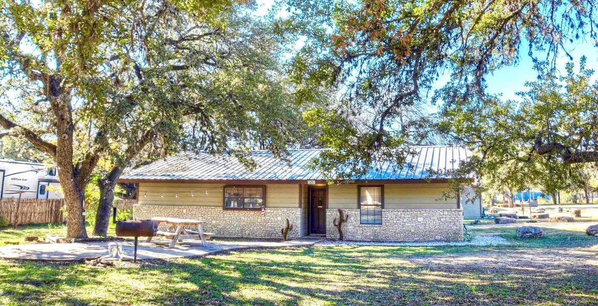 This charming Hill Country home is situated on two flat, usable lots just a block away from River Road. Inside, you'll find all the comforts needed for an enjoyable vacation in Concan, including three bedrooms and two bathrooms, accommodating up to 8 guests. The home comes equipped with a washer and dryer, refrigerator, microwave, stove, and a wood-burning fireplace. This well-built, single-story home features a rock and Hardiplank exterior, a metal roof, a concrete slab foundation, and is being sold fully furnished. You can host an outdoor BBQ on the patio, relax around the fire pit under the majestic oak trees, or take a short walk to the popular Hippie Chics outdoor restaurant to soak in the vibrant atmosphere. There are no restrictions or HOA fees for this property, allowing you to enjoy it however you wish. Currently, it is one of the lowest-priced homes on the market at $208 per sq...