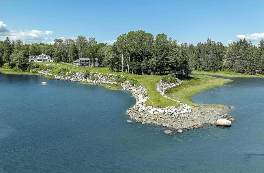 This stunning waterfront family compound is an exceptional must-see! Brooklin House comprises a 4,500 sf main house, conveying fully furnished, and an adjacent 3,000 sf former boat-building barn. This property provides an unparalleled blend of space, comfort, and luxury. Set on 2.4 acres with 1,200' frontage on Herrick Bay highlights are its breathtaking, far-reaching views from both buildings. The comfort and grandeur of both the house and barn are evident from the moment you step through each front door. The main house, which was newly renovated in 2020/21 to include all modern utilities, amenities, and outstanding attention to detail, features a total of 13 rooms. There are 4 bedrooms and 2.5 baths in addition to a finished basement with a games and family room. A spectacular separate top floor penthouse primary suite provides a 5th bedroom, second full kitchen, sitting area, TV room, 3rd full bath, walk in closet and a private deck overlooking stunning views of Herrick Bay. The Penthouse suite is in a league of its own and exactly what you'd expect to find in a property of this caliber. The main house has 2 remote controlled gas fireplaces and an established rental history. The 2023 renovated barn and attached 2 bedroom, 2.5 bath barn apartment, amplifies the enchanting environment of the main home while expanding the property's multi use living potential. The barn apartment has a state of the art kitchen equipped with high end appliances, two open plan living room areas and dramatic architectural details throughout. The expansive additional barn area is testament to refined elegance and sophistication, a multi functional space perfect for extended family gatherings, an art or hobby studio or for storing vehicles or other collections. Both buildings have been designed and decorated by an acclaimed interior design professional with vaulted ceilings, large windows and tastefully neutral color palettes that create a sense of openness and tranquility.