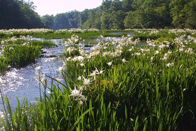 About 2.9 miles on scenic Hatchet Creek with dense stands of rare Cahaba lilies