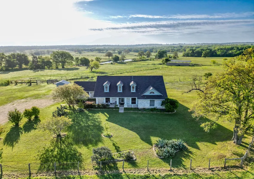 The acreage has panoramic views of neighboring land featuring lots of elevation changes, scattered groupings of old-growth trees, a wet-weather creek, a stock pond, a thicket of trees along the south fence line that provides great cover for cattle and habitat for the white-tail deer, wild hogs, turkey and ducks that frequent the property, improved pastures, a barn (electricity and water) and shed (electricity w/water nearby) near the house for horses or other livestock and a 50 amp RV hookup. The brick home has a new roof done in April of '22, was recently repainted throughout, has been immaculately kept and is move in ready! It features high ceilings, an open-concept Living Room and Kitchen w/breakfast nook and a Formal Dining Room, a large Primary Bedroom and Ensuite Bath w/shared walk-in closet, three additional bedrooms a Guest Bath, a Laundry w/half bath, an attached two-car garage and a great, back-yard deck for added living and entertaining space!