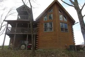 log home has vaulted ceilings, wood