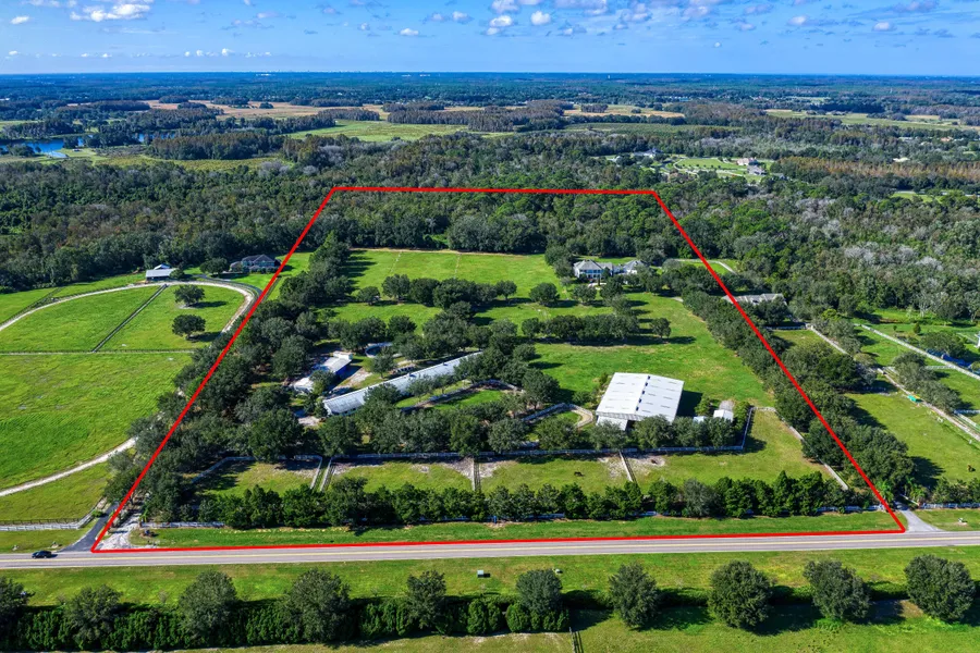 A rare find for the serious horseman! Situated on 30+ acres in Odessa, this well-equipped, horse facility is an excellent opportunity for professional and amateur riders alike. Live the gentleman farmers lifestyle or plan to run a professional riding/training facility. From the private owners gate, travel down the lighted, oak tree lined driveway to a spectacular Georgian-style residence. Enjoy a morning cup of coffee or an evening glass of wine on either the upstairs or downstairs porches overlooking your horses grazing in the lush, green fields. This 4 bedroom with 4.5 bathroom home boasts attention to detail throughout with custom windows, crown molding, 2 commercial size conserve HVAC units which constantly circulate fresh air into the home, a climate-controlled wine cellar, a smart room for technology, whole house generator, security lighting and cameras throughout the property, just to name a few. The house can accommodate 4 cars and a golf cart in its 2 oversized 2-car garages and a separate golf cart garage. Welcome guests to the attached, yet private, 2 bedroom/2 bathroom guest house that any guest would consider a retreat. This could also be used as an extended family residence as it has a full kitchen. The barn has a separate gated entrance for boarders and staff to access the property. The main barn with large concrete center walkway holds 30 12 x 12 stalls with automatic waterers, rubber mats, fans, and lights in each stall. The barn is fantastic for keeping cool with excellent airflow with an east west layout, 6 breezeways, 3 copula exhaust fans, block construction and an insulated roof. The barn also hosts 2 indoor wash racks, 5 outdoor wash racks, a Shoo Fly spray system, a feed room, a lounge overlooking the lighted arena, 3 tack rooms, and an office. There is a second barn with 4 stalls that open to 2 large pastures, ideal for broodmares, retired horses, etc. There is a 100 x 200 lighted arena with a pa system, a 100 x 90 outdoor arena, and a 90 x 130 covered arena with excellent sand clay footing, led lighting, 2 industrial fans, a P.A. system built in for shows, and a covered viewing area. There is also a lighted round pen, hay/storage barn with 3 grooms apartments and laundry, trailer or RV storage shelter and well house. There are 11 paddocks/pastures and riding field. All pastures and riding field are irrigated. Enjoy trial riding around the property and in the wooded area towards the back of the property. There is also access to an additional 2.5 miles of riding trails in the community. All of this just 20 minutes to Tampa International Airport.