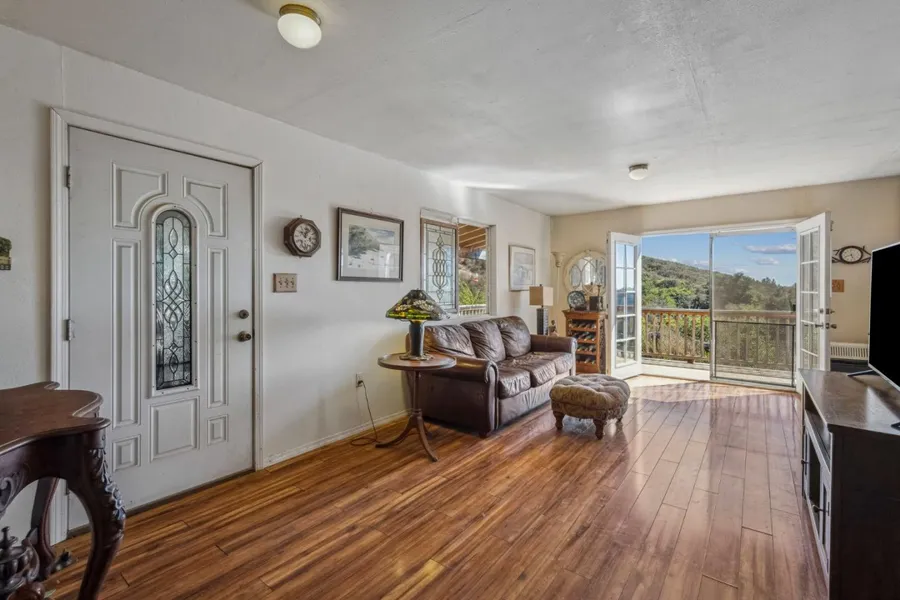 Panoramic Views! Nestled in the picturesque Morgan Hill mountains, this idyllic, privately gated, off-grid cottage home spans 30 acres and offers breathtaking panoramic. The land includes approximately 5 acres of flat, usable terrain as well as a seasonal spring. This sturdy pole home is constructed with top-notch insulation, durable post-frame construction, and double-pane windows. It maintains a comfortable temperature year-round and can withstand high winds and severe weather. There are 750 square feet of wrap-around redwood decking and overhangs, providing the perfect outdoor space to enjoy the serene mountain environment or find joy in nighttime star gazing. Equipped with an off-grid solar system, this home offers energy independence and eco-friendly living. The rain catchment system and large-capacity water tank ensure a reliable water supply, making this property self-sufficient. ...