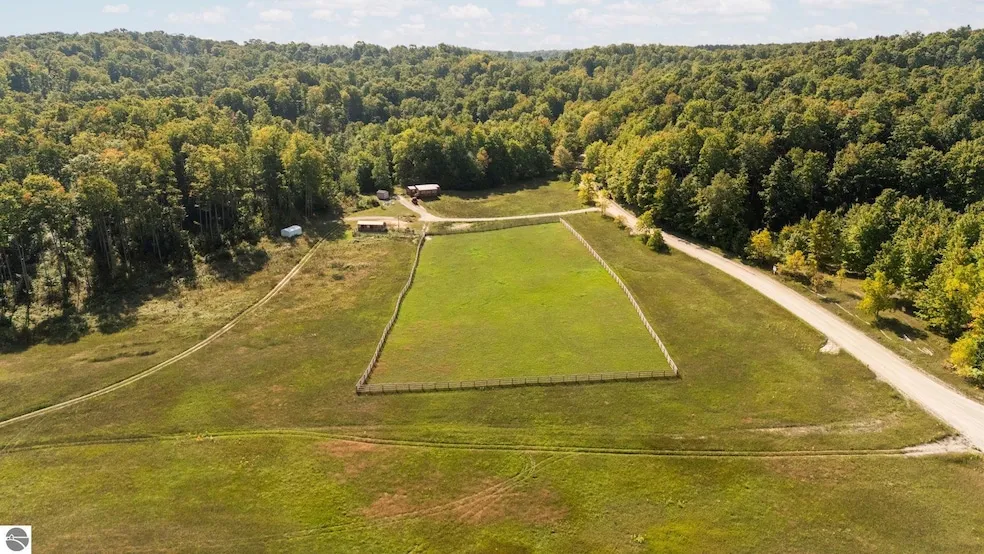 Nestled in the heart of Leelanau County, this 30+ acre property offers a picturesque blend of open fields and rolling hills. At its center sits a turnkey split-log home, featuring two bedrooms, one bath with tiled shower, and inviting wood finishes throughout. The spacious kitchen and bright living room create a warm and welcoming retreat filled with natural light. Outdoors, the land is perfectly suited for equestrian or hobby farm pursuits. A well-kept horse stable with water, electric and an adjoining pasture provides ready space for animals, while the surrounding acreage invites endless opportunities to explore and enjoy. One approved land split will pass to the new owners. Privately set yet just minutes from downtown Traverse City, this property offers the best of both worlds: peaceful seclusion with easy access to town. Whether you envision a full-time residence, weekend escape, investment, or working homestead, this is a rare chance to embrace the Northern Michigan lifestyle.