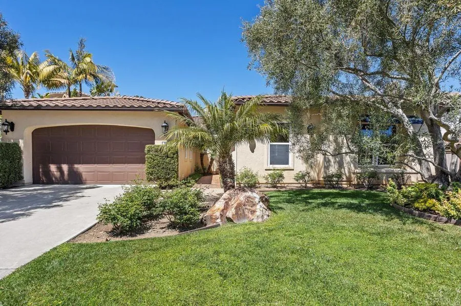 Welcome to luxurious single-story living here in the gated community of Varadero, San Marcos' gem. If you have been searching for a home full of upgrades that is truly turnkey, look no more. Pride of ownership abounds! First you will be greeted by a beautifully landscaped front yard, with no steps inside and out. Next, enter through the wide foyer, opening to a lovely, spacious living room. Soaring 10-foot ceilings throughout the home. The heart of the home is the open-concept gourmet kitchen, complete with 7-burner gas stove, sleek countertops, plenty of storage space, reverse osmosis drinking water system, and walk-in pantry. The kitchen seamlessly connects to the family room, creating an inviting space for gatherings and everyday living. Step outside to the backyard oasis, where you'll find a perfectly landscaped yard, with two avocado trees, one lemon tree, and a gas firepit, creating a perfect place to unwind and enjoy stunning sunsets with an ocean view. Pavers line the side of the yard. Additional features of this residence include beautiful travertine flooring, with inlaid design; three fireplaces; 2-zone HVAC system; retractable patio awning; plantation shutters; built-in surround-sound speakers; 220 50-AMP car charger in the 3-car tandem garage, complete with stylish built-in cabinetry, water softener, central vacuum, and tankless water heater. You will love the huge primary bedroom and ensuite bathroom, which includes dual showerheads, two closets, and two rare separate water closets! Down the hallway, you'll be greeted by a den/optional 4th bedroom, which could also serve as a home office. The additional two bedrooms feature ensuite bathrooms, perfect for company. This gated community comes with 24-hour security, pool and spa, and a clubhouse area, which is great for parties and get-togethers. Don't miss this opportunity to own this gorgeous home in the Lake San Marcos area, just down the road from the coveted Lodge at San Marcos, featuring golf, tennis, kayaking, fishing, and new coveted pickleball courts! Schedule your showing today and experience the charm of 1742 Cuadro Vista firsthand.