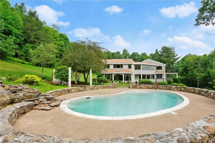 Find your inspiration and a deeper love of nature on this magnificent 30+ acre landscape. A top a long winding driveway passing by a small stream, evergreen forests, lush fields, and over a mile of trails to hike or use for motorsports. This custom built, passive solar designed contemporary was thoughtfully engineered by the home's only owner. Southerly facing panoramic views looking out over a peaceful oasis. The Azek wrap around decking provides a high-style yet earthy outdoor living space. The foyer hosts an indoor garden and koi pond with waterfall. Large entertaining areas throughout including the light and bright Eat-In-Kitchen and Living Room. Upstairs, find 2 wings, one includes the Master Bedroom w/En Suite Bath, 2 Walk-in-Closets and a private balcony. The second wing is home to the 3 other bedrooms and full bath. Remote working? No problem! There are 2 separate office spaces/bonus rooms. The lower level offers another 600 sq ft of finished space with walk out. And outside is likely where you will find yourself as there is no shortage of breathtaking views from every angle. Even the in-ground, gunite pool is surrounded by serene countryside and glimpses of wildlife off in the distance. Detached, heated 3 car garage outfitted with a lift, generator, and 100 amp electrical service with 240 volt outlets. Located in bucolic Bridgewater, less than 90 minutes to midtown Manhattan and an easy drive to the conveniences of Brookfield, New Milford and Danbury.