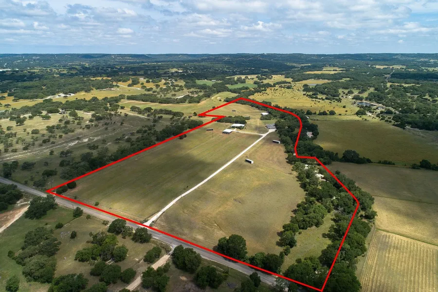 Rarely offered: 30 unrestricted, equestrian friendly acres with long range Hill Country views and +/- 2600 of both sides of McKinney Creek. The property boasts a well-kept 5 bedroom 3 bath ranch style home showcasing 2 master suites on either side of an open concept floor plan. A 2600 sqft 8-stall barn, spacious work shop, hay barn, and multiple loafing sheds reside over 100% useable land. Ag-exemption is currently in place.