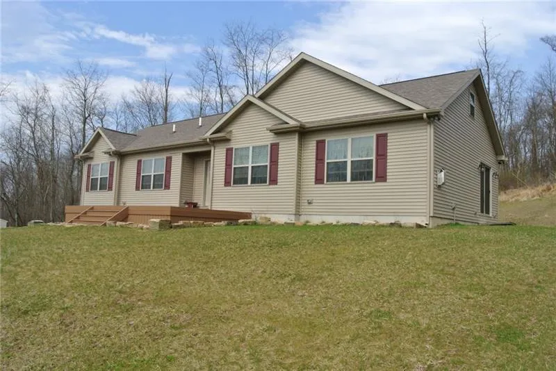 2 Year old Ranch home that has it all! The inviting foyer says "welcome home". The Living room, dining room and kitchen are all an open floor plan. The Spacious Living room has a beautiful corner (gas) fireplace. The kitchen is fully equipped and has lots of counter space. Sure to be any cook's dream. There are many windows creating a bright and cheery atmosphere. There is a first floor laundry with a built in closet and additional sink and areas for hanging clothes and storage. The large master bedroom suite has super large closets and the master bath has a tub, and double sinks. There is also another full bath. 2 more spacious bedrooms with large closets. Thee is a full walk up attic with lots of storage space or could easily become an additional bedroom. The garage can easily fit 3 cars and there is an additional storage bldg. with a garage door for tractor etc. This gorgeous home is on 30 acres with Free gas.