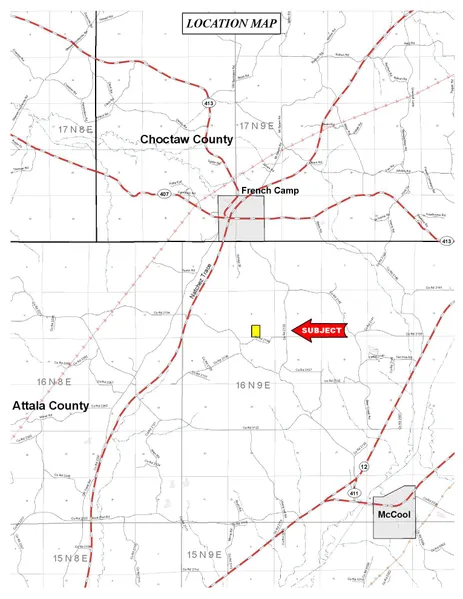 Short Description: 30 acres pine timberland in northeast Attala County, 2 miles south of French Camp, MS