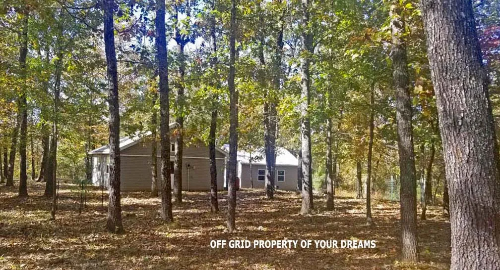 Totally OFF GRID property with 30 beautiful wooded acres, cabin & detached garage/storage building. Driveway on paved CR 475 (Lake Oak Drive) and a short drive to Walmart but it feels like a world away from city life. Power is collected by working solar panels, batteries and invertor system. Water is a rainwater collection system and stored in a cistern. Wood stove for heat, propane tank for stove & hot water, small septic installed for vacation use by sellers. Open floor plan, living, dining and kitchen