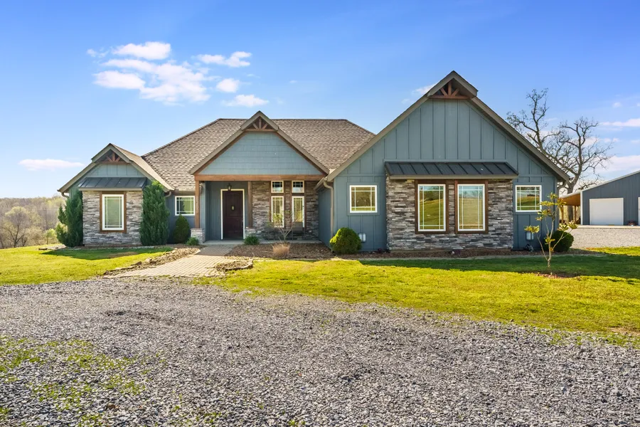 Discover your own private retreat on 30 acres of scenic countryside, complete w/ a peaceful live creek & stunning valley views. This beautiful 4-bed, 3-bath home offers 2,671 sq. ft. of thoughtfully designed living space, including 2 spacious living rooms. The gourmet kitchen features quartz countertops, ample cabinetry, & a 2-sided see-through fireplace that connects to the covered screened in back porch. Enjoy outdoor living year-round with a heated back porch overlooking a sparkling heated pool, complete w/ a diving board & tanning ledge - ideal for both relaxing & entertaining. The property also includes a 30' x 50' shop w/ a 10' lean-to, a heated & cooled room perfect for a gym or man cave, & a separate 1-bedroom, 1-bathroom apartmentideal for guests, extended family, or rental income. Additional features include solar panels for energy efficiency and wide-open outdoor space with endless potential. This rare estate blends comfort, versatility, and natural beauty. Dont miss your opportunity to call it home.