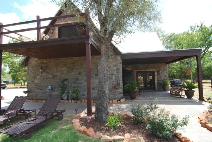 DRASTIC PRICE REDUCTION! Tranquil hideaway & perfect personal retreat. One of a kind secluded home on 30 acres with mature pecan & oak trees. Tastefully decorated home with great color combinations. Outdoor pergola, lush landscaping, large covered patio, inground pool & 2 stocked ponds. Perfect for entertaining or just relax poolside! Enjoy the fresh air & views from the upstairs balcony. Converted garage is currently being used as 3rd bdrm. House was built as a garage apartment. There is plenty room to build another home on the property.