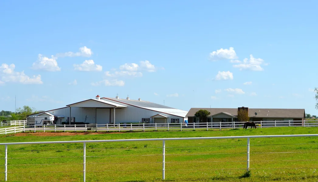 132' X 120' Morton Barn: 60' X 120' Indoor Arena, 36 12' X 12' Stalls (19 on one side and 17 on the other), Overhead Doors at Each End with a 12' Concrete Alley, Stalls Leveled with Rubber Mats, Wash Bay, Tack Room, Office, & Lab.