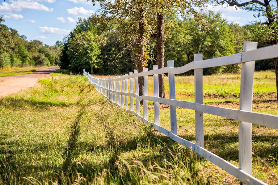 Approximately 10 acres of Cleared Area with Scattered Post Oak Trees throughout. 20 Acres of Wooded area with walking trails to the Spring. New wood-board fencing along the front of the property.