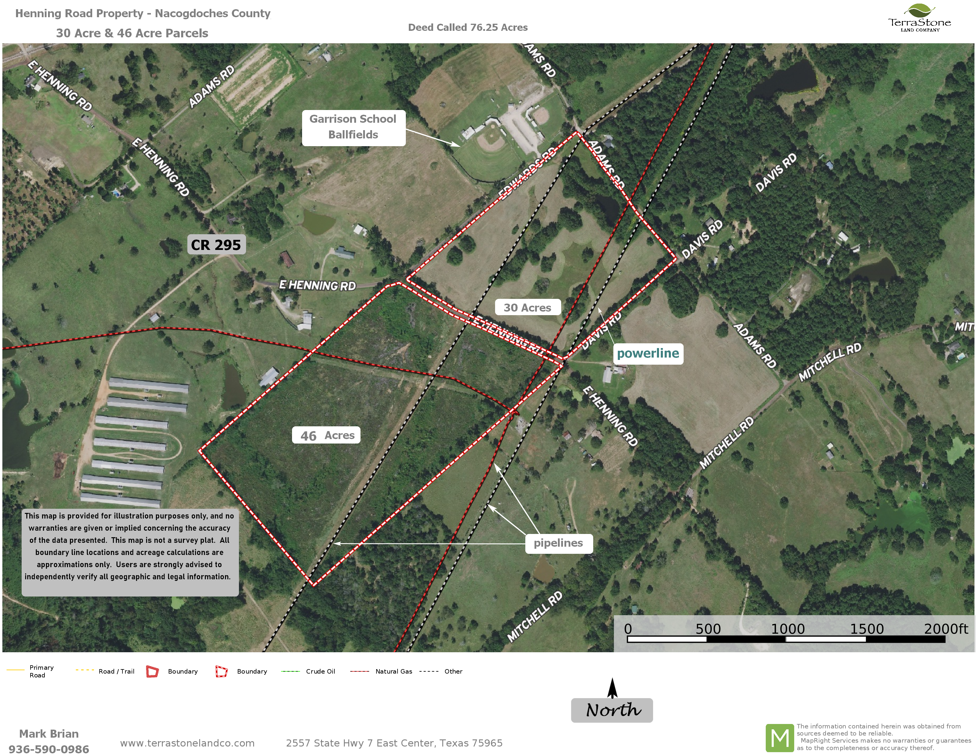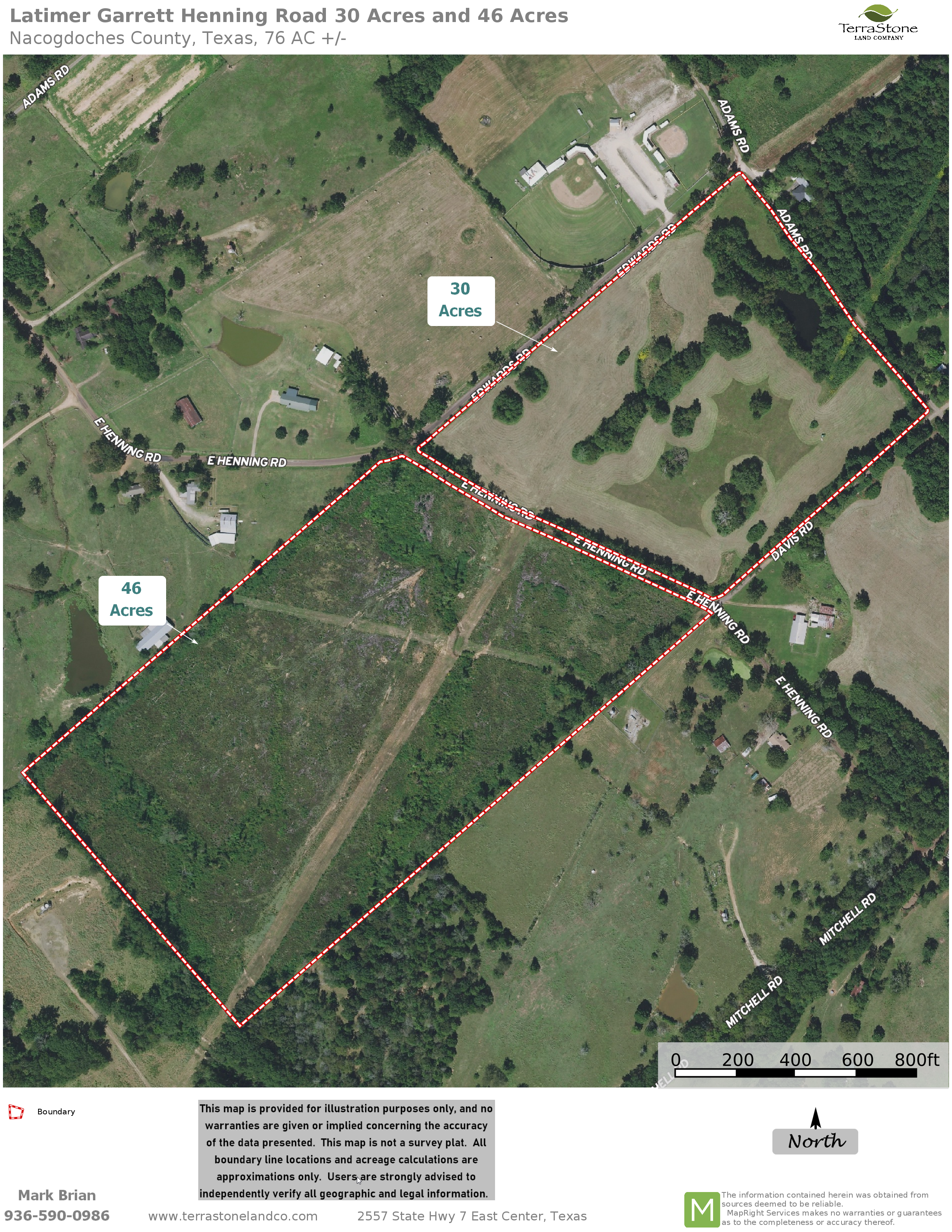 TerraStone Land Company strives to gather good information concerning listed properties from reliable sources, but cannot guarantee the accuracy of said data, including but not limited to boundary line locations, acreages, fence lines, tree ages, timber volumes or values, legal title, environmental hazards, condition of improvements, legal access, utility services, site suitability for agricultural or forestry use or ad valorem tax status. All maps are provided for illustrative purposes only and are not survey plats. Unless specifically stated, no formal land surveying by a licensed surveyor has been used in determining acreages. Aerial and ground photography may include neighboring properties that are not included in this offering, and such photography is intended for general use only. TLC recommends that potential buyers examine the offered property to their own satisfaction, and are strongly urged to verify all pertinent facts for themselves. TLC is not responsible for errors, omissions, offering withdrawal or price modifications.