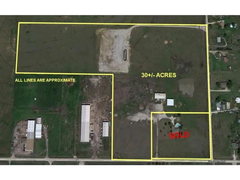 GREAT POTENTIAL! Perfect for your home or business. 30 + or - acres, 50x100 workshop, 60x60 workshop, pipe fencing, road frontage on Seaborn and Robinson Rd. Easy access to I-35. Property can be subdivided. Buyer to verify all information.