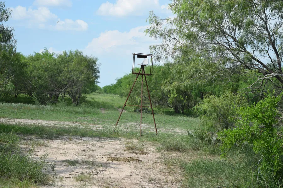 The topography in this area is gently rolling with a mixture of soil types from sandy loam to some clay based soils. The ranch is about 80% big, native trees and native brush, with the remainder being fields and senderos. Brush include mesquite, granjeno, retama, anaqua, prickly pear, lime prickly-ash, blackbrush and other native brush. En Medio Creek crosses the ranch.