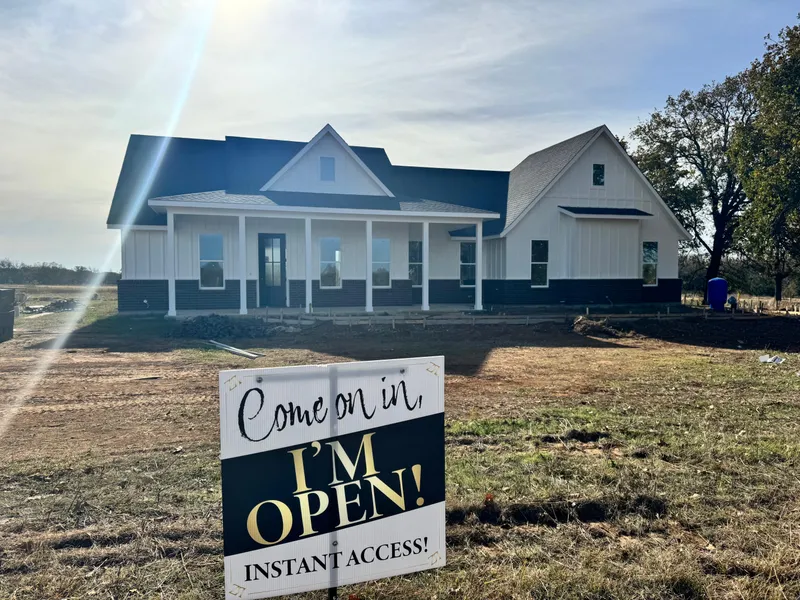 10,000 Christmas Builder Bundle including Starlink Internet, gutters, sprinkler system & more. MOVE IN NOW custom designed Loretta plan by Zeal Home Builders. Nestled on 2 serene rural acres with picturesque, lush trees, this inviting 3-bed, 2.5-bath home with a pocket office offers an open living to the dining and kitchen with large windows front to back allowing natural light! The master suite offers double sinks, a walk-in shower, & a roomy closet that connects to the laundry room. This charming yet spacious layout features a generously sized Kitchen Island perfect for hosting gatherings! Beneath the breakfast bar, ample cabinetry awaits for storing your special occasion cookware. High-end features throughout include custom cabinetry, Delta faucets, decorative mirrors, wall-mounted TV outlets, hardline ethernet ports, and energy-efficient spray foam insulation. The fully finished 2-car garage is equipped with can lighting and a smart MyQ side mount garage motor with an auto-lock for added security. Outside, expansive porches greet you, featuring solid cedar stained columns that create an inviting first impression. High-end features throughout include custom cabinetry, Delta faucets, decorative mirrors, wall-mounted TV outlets, hardline ethernet ports, and energy-efficient spray foam insulation. Located in Mambrino Elementary School! Nestled in historic Granbury, this home offers the perfect blend of modern living and rural tranquility, with NO city taxes, NO water bill, $ NO HOA. Enjoy the peace of country living while being just minutes away from downtown Granbury Square & a short 15-minute drive to Lake Granbury Marina. Txt keyword ZHBHOME6 to 88000 for customization details. Txt keyword ZHBHOME6 to 88000 for customization details