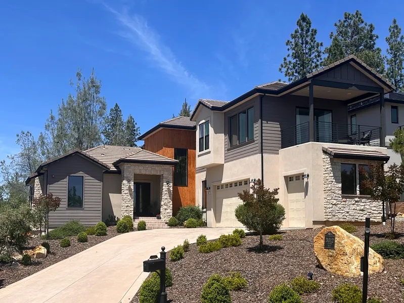 Stunning 2020 Mountain Modern Home on a Golf Course, offering breathtaking views of the 1st Fairway, adjacent to the Winchester Golf Clubhouse & HOA Swim and Tennis Club. The home features a striking front facade with neutral stucco, honed wood, and stone accents. Inside, light-toned wood floors, white quartz counters, and contrasting tile details enhance the contemporary and airy feel. The living room's gas fireplace is framed by open shelving & sliding doors lead to a covered patio perfect for relaxing, barbecuing, and taking in the golf course vistas. This exceptional home spans 2,997 sqft with 4 beds and 4 baths, including 2 primary suites. The first floor features a gourmet kitchen with Italian appliances, dining area, living room, primary suite, guest room/office & a full bathroom. The 2nd floor boasts 2 covered decks with stunning golf course and sunset views, a second primary suite, guest room, bath & a spacious family room. Potential for a fenced pet area. Whole House Fan. Insurance quotes available. The HOA dues of $265/month cover 24/7 Security Patrol, Swim & Tennis Clubhouse, Heated Pool, Spa, Tennis, Pickleball, Bocce, and social events. Golf memberships available. This unique community combines mountain charm with public utilities and paved roads.