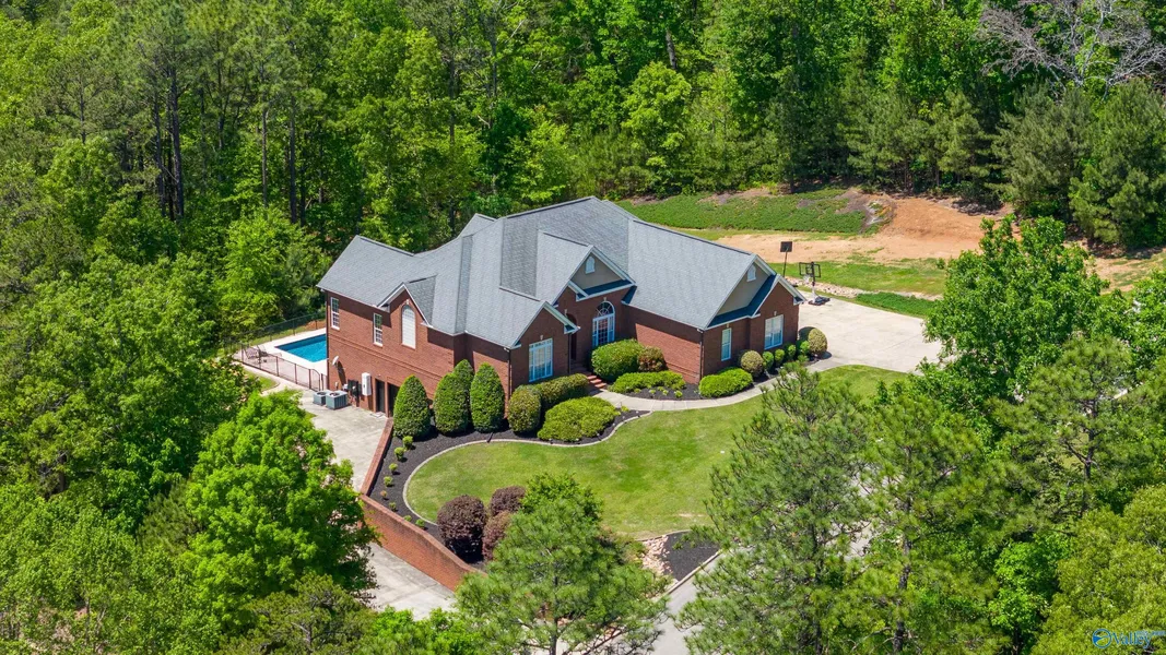Step into luxury living with this executive custom-built home nestled in the picturesque Hickory Ridge neighborhood. Boasting over 5000 square feet, this 5 bedroom 5 bath offers ample room for everyone. As you enter, you'll be greeted by gleaming hardwood floors. The gourmet kitchen features exquisite granite countertops, an eat-in area with doors leading to the brand new upstairs deck. The master suite is equipped with trey ceilings and a beautiful, oversized tile shower. Downstairs you will find the perfect rec area or 2nd living room with 2 additional bedrooms and a full bath. Paradise awaits outside with your gorgeous private in-ground pool, all situated on almost 3 acres.