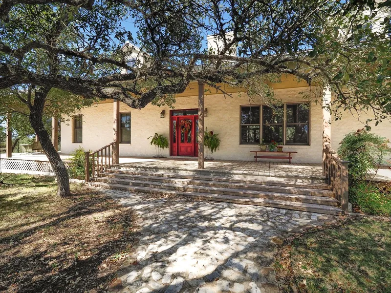 Country/Victorian/Rustic Custom Home w/Veranda that wraps entire home with panoramic views. Stained Concrete Floors, Vintage Light Fixtures throughout, Dry Stack Moss Rock FP with Seat height Hearth, Hot Wtr Circulating Pump, Alderwood Cabinets/Built-Ins, Rainwater Collection, Bead Brd Ceiling, Chandelier in Dining, Standing Seam Metal Roof; Home Master Bath Claw Tub w/Blue Transfer ware Mosaic design. Garage Efficiency Apt. Storm shelter. Ag exempt. Call listing agent for appointments.