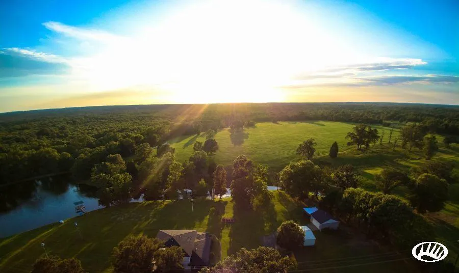 IMPROVEMENTS: Approximately 2,600 sq. ft. home comes fully furnished ready to host and sleep up to 11 people! It features 2 living areas, a dining room, kitchen, laundry/mud room, 3 bedrooms, a bunk room, and 2 full bathrooms. Two large back porches overlook the lake and property, providing scenic sunsets in the evening! There is also a carport and garage with automatic door. The property entrance has custom ironwork fencing and gates. A large, old barn is on the edge of the timber and currently used to house the two tractors.private showing!