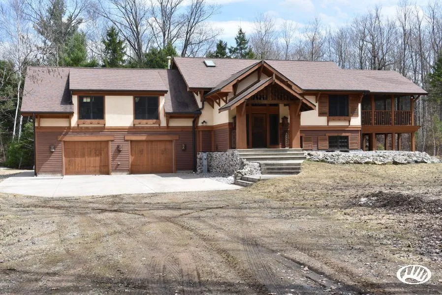A fabulous property built in 2009 as a corporate hunting lodge and retreat with all the amenities a party would ever need or want. As you enter the gate you feel like you just escaped and left the fast pace of your world behind. Beyond the large storage building is the circle drive that services the lodge graced by a pond where deer come for water on a daily basis. Jump on your UTV or snowmobile and enjoy miles of internal roads that lead you to the hunting blinds, one with a wood stove and big enough for a meeting, but pay attention to the rock formations this area is known for. When you finish the day’s hunt or return from fishing clean up the mess in the mud room designed specifically for a crew on a mission to have fun. A large refrigerator and freezer are found in the oversized attached garage that allow you to take care of your game. Then find your way to the pool room to show your skills at the table, pool or cards, or jump in the hot tub to take the chill off. The wonderfully appointed kitchen will have you volunteering to take orders for your guests if you can take them away from the beautiful dry stack wood burning fireplace. The downstairs has its own fully equipped kitchen and a wood burning stove if you feel like some quiet time or to give the kids their own space. Don’t take the laundry home, the washer and dryer are already here for you. When you walk through the lodge you will not want to leave. But since everyone has to go home sometime, not to worry; a complete security system is in place to make you feel safe. And if the power should ever go out there is a 13 KW generator on-site to take handle it. As mentioned, all the details of this lodge were well thought out. And the quality of the leather chairs and sofas, handmade accents and front entry door that was made and shipped here from Germany are sure to catch and keep your attention. Without question, when you make the decision to own this property you will gain many friends and most of them will ask for a key. Take the challenge, can you look at the photos just once? Or do you find yourself checking things just one more time? This is a truly rare find, a large property with everything you could want. Call today to schedule an appointment to feel what it might be like to own one of the Northwoods’ best properties. We await your call.