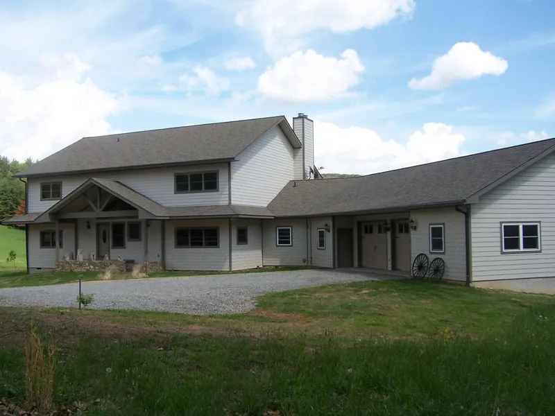 This custom-built 3825 sq. ft., 3 bedroom, 3 bath home on 31 acres, is situated in the heart of the Blue Ridge Mountains of Southwest Virginia, and just loaded with impressive features. Upon entering, your eyes are immediately drawn to the beautiful 16x16 slate tile and wide plank reconstituted oak flooring. Next, you are sure to notice the massive main beam which gives this timber frame home its unique character. The timber framing consists of reassembled oak from a pre Civil War (circa 1825) barn structure in Indiana. The open floor plan has a great room with cathedral ceiling, a wood burning rock fireplace, and 2 sets of double doors leading onto the deck. Also open to the great room, you will find the very well-appointed kitchen with high-end appliances, such as a propane cooktop, double ovens, and an oversized refrigerator with full size freezer, plus a walk-in pantry.