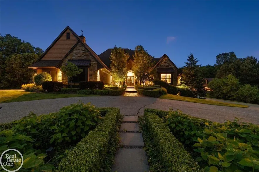 A Rare Find!! Private 31-acre gated estate in highly sought after Oakland Township. This Estate features a custom built 1 1/2 story home with finished walkout to built-in swimming pool, 8,000 sq. ft. of finely appointed living area plus a 5,000 sq. ft. barn with awesome entertaining area including a wet bar, full kitchen, stone fireplace, open entertaining area with 2nd floor apartment plus additional parking for 10 cars; Gourmet chef's island kitchen with all commercial grade appliances, large hearth room & breakfast nook and wet bar; Beautiful hand rubbed beams and millwork in living room & formal dining area; Spacious primary suite with his & her walk-in closets with luxury bathroom; Finished walkout includes a 4th fireplace, open entertaining area with wet bar, exercise room and 4th full bathroom; Upper & lower covered patios with great views of well-manicured grounds, 36' x 18' in-...