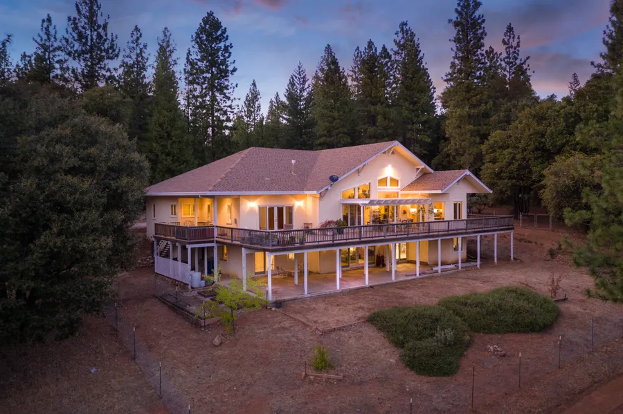 Custom built home boasting over 5,000 sq ft and 30+ acres! This stunning home features picture windows thoughout, taking advantage of the sweeping views. The main level offers single story living with the kitchen, living, dining, office and master all on the first floor. If you enjoy cooking, you'll love this large kitchen and huge center island! Open concept great room with solid oak hardwood flooring, vaulted ceilings in the living room, wine bar, and impressive fireplace. The master features a fireplace, en-suite bath with walk-in closet and adjoining hobby/craft room. Step out the master onto your wrap around deck to take a dip in the spa. Downstairs you'll find a large bonus/living room, bedroom, workshop & storage rooms. Off the oversized garage is a separate apartment room with bathroom for guests. If you're looking for privacy, peacefulness, views, and gorgeous home, this is the one for you!
