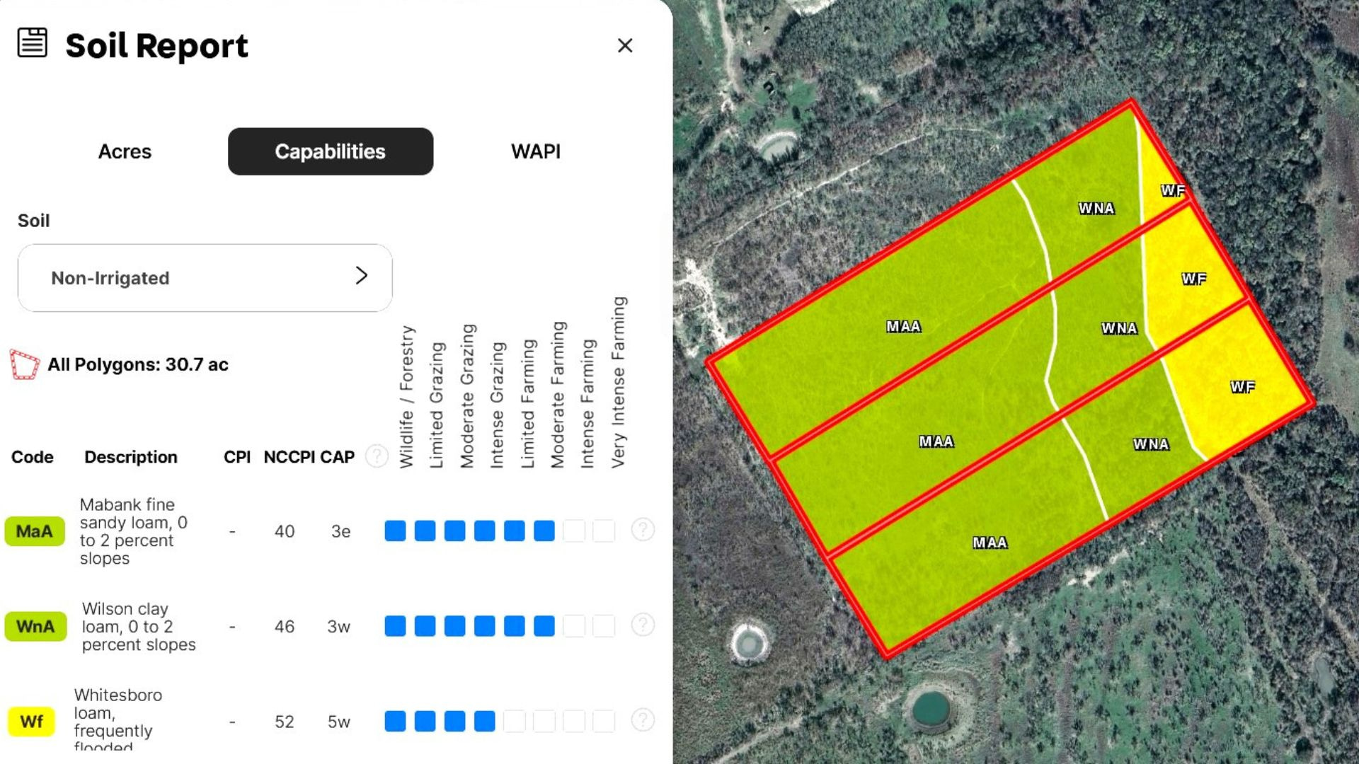 Search for detailed parcel information including; Elevation & Vegetation Maps, Ownership Information, Detailed Parcel Information, Crop History Map, Soil Survey Productivity Data, and more.
