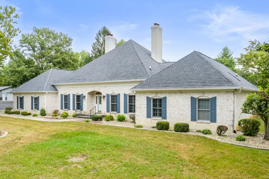 Stunning custom ranch home nestled on 32 lush wooded acres. Designed by Kent Franklin, this spacious property boasts 4 large bedrooms and 3.5 bathrooms, offering 7366 sq feet of comfortable living. The family room features 12' ceilings, custom built-ins and a cozy fireplace, perfect for relaxing evenings. Main level boasts a formal dining room, breakfast nook, 342 sq ft screened porch and office/4th bedroom option for added flexibility. The full basement houses an oversized family room w/fireplace, full kitchen, full bath, and 2nd office/rec room - the perfect home for entertaining family and friends. The property also includes a 41x24 pole barn, wooded trails, stocked pond w/dock and hunting lodge. A truly rare Bargersville opportunity!