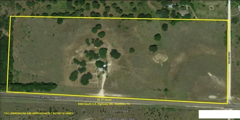 Approximately 31 acres located on South U.S. Hwy 281 with additional access on County Road 507. Excellent location approximately 7 miles from Hamilton. Vintage cottage with garage that can be re-converted for vehicle use. Barn. Outside of city limits. Beautiful views and numerous building sites. Per TXDOT traffic count is 3,000 cars per day.