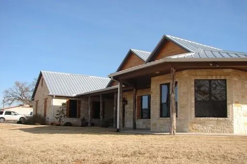 Beautiful 2,800 sq. ft. rock home with spacious floorplan & western interior finishes-stained concrete floors, vaulted beamed ceilings & gorgeous stone fireplace open to the dining & living area. Fantastic kitchen with granite counters, copper sinks, bread warmer & quality appliances. Wrap around porch. Amazing view of coastal pastures near Brazos River. Metal barn with 5 stalls & room for 6 more plus storage for hay & equipment. Cross fenced. Ready to move in & operate for horses &/or cattle.