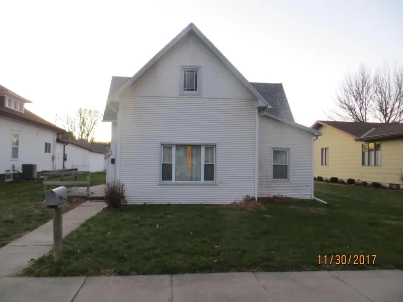 4 BR, 1 BA with newer windows, furnace and A/C! Beautiful oak floors and original woodwork on main floor! Upstairs bedrooms need major update! Main Floor laundry in tiled bath! Great location, flat lot with alley access! Extra storage in what used to be a single garage. Property is close to downtown, park and grocery store! Take a look today!