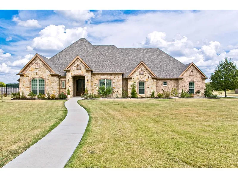 Exquisite custom home on 2 acres in Lone Oak ISD! Spacious open floor plan features a lovely stone fireplace, raised ceilings, crown molding throughout, and gorgeous hand scraped wood floors! Stunning Kitchen features granite cttps, island with second sink, brk bar, pantry, dbl oven, and gas cktop! Luxurious master suite features a large sitting area with fireplace, separate vanities, jetted tub, walk in shower, and huge WIC!