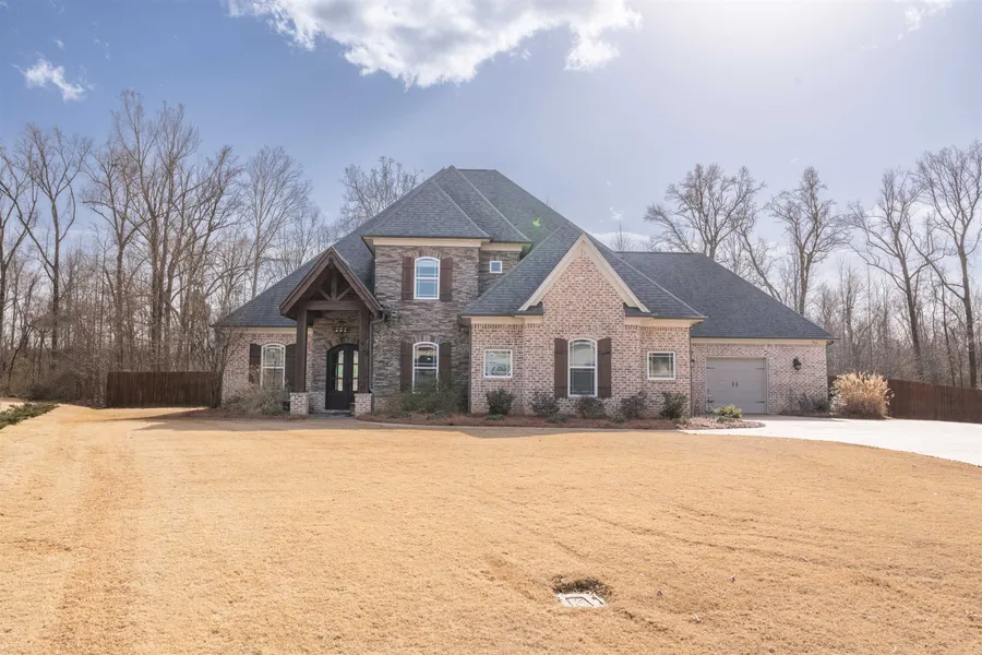 Rare Opportunity in Atoka's Exclusive Gated Community! This stunning custom-built home offers an exceptional blend of space, functionality, & thoughtful design. With 4,100 sqft of living space, this home features 4 spacious en suite bedrooms, an office, & a lofted bonus room—perfect for a variety of lifestyle needs. The versatile floor plan includes 2 bedrooms & 2.5 baths on the main level, with 2 additional bedrooms and 2 full baths upstairs. Designed for convenience, the home offers dual laundry rooms—one on each floor—and an expandable attic space already equipped for a future bedroom & bathroom if desired. The expansive 3-car garage includes an oversized single bay w/ a convenient drive-thru feature for easy backyard access. The heart of the home is the large eat-in island, providing ample space for gatherings and everyday living. Step outside to enjoy the huge covered patio, an ideal setting for entertaining or relaxing while overlooking the beautiful scenery.