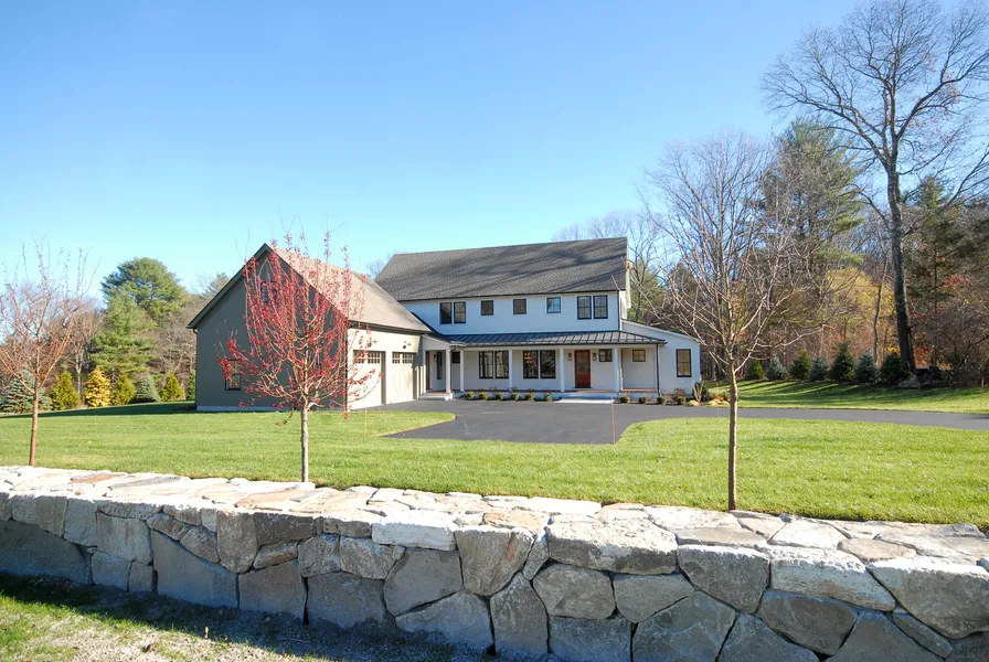 Marking the confluence of modern luxury, timeless design & exceptional craftsmanship, this 5 BR CN Farmhouse is strategically sited on 4.5 acres & masterfully combines a flrplan that underscores thoughtful attention to detail, beautifully curated finishes & fixtures and state-of-the-art infrastructure throughout 3 levels of living. Open interior drenched w natural light, tall ceilings, 5" wood flooring, exposed beams, stone fp & generously proportioned BRs are immediately apparent. Other features include Kit w 10' island, w/i pantry, wetbar & adjacent DR, 1st flr office/en-suite & smartly configured 13'x13' mudrm. Sanctuary-worthy main BR w shiplap vaulted ceilngs & walls, 20' closet & spacious, spa-like BA w/radiant heat, soaking tub & glass shower. Finished LL w exercise room, rec- and playrooms & 5th full bath. Outside, a 39' bluestone patio offers VT like views of open, bucolic land & timeless stonewalls. Direct access to cons land & trail network. This property is beyond special!