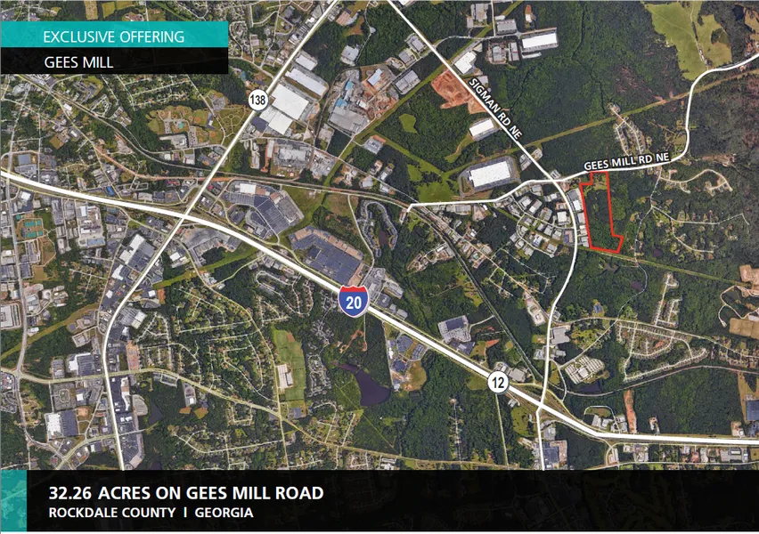 The 32.26 acres on Gees Mill Road is convenient to I-20 and close to many retail amenities making it an ideal location.