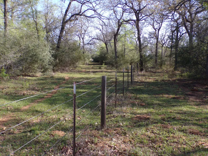 This is the most wooded pasture out of a total of 124.91 acres. My estimate is 65% woods and 35% scattered clearings. This pasture has it's own lane out to Jeddo Road so anyone investing in this land can access it without an easement. There is power to the pasture along the south boundary and a public water system along Jeddo Road. The tract has a good roll to the surface and a deep draw that runs through it which is an ideal site for a pond to be constructed. The land has a good perimeter fence. The woods are typical for the area being mostly post oak but also some mesquite, cedar, and a few cedar elm along with an understory of American beauty berry and yaupon. This is a quiet area, peaceful and scenic. The right of first refusal can be added for an adjacent 35+ acres.
