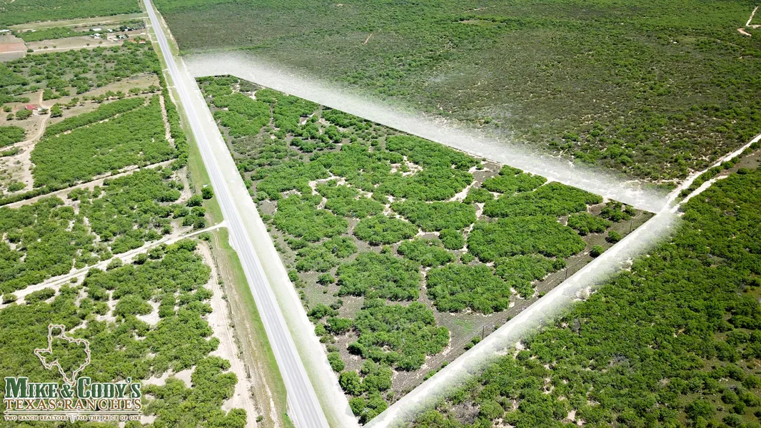 The ranch fronts on the south side of Highway 277 and is located 10 miles northwest of Carrizo Springs and 11 miles west of Crystal City, both towns roughly 5,300 and 7,100 in population. Eagle Pass, a town of about 50,000 people is located 33 miles west of the ranch and is home to many hotels, restaurant chains, and casino.