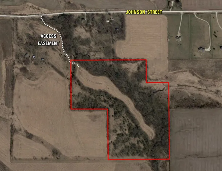 Offering 32 acres m/l of excellent recreational ground in Warren County. This property lies south of Martensdale and is only 20 minutes from West Des Moines. Farm consists of approximately 5.16 tillable acres carrying a CSR of 68.6 (CSR2 of 62.9). Balance of farm consists of thick brush with a creek running through the property. There is potential for building sites with rural water nearby. Call agent for details. This farm is full of large whitetail deer and wild turkeys, the proof is in the pictures. This property is part of a larger parcel and will be subject to survey prior to closing. Located 0.5 miles south of Hwy 92, the land is situated on the south side of Johnson St. This parcel will be accessed by an easement from Johnson St (see photos for approximate location of easement.)