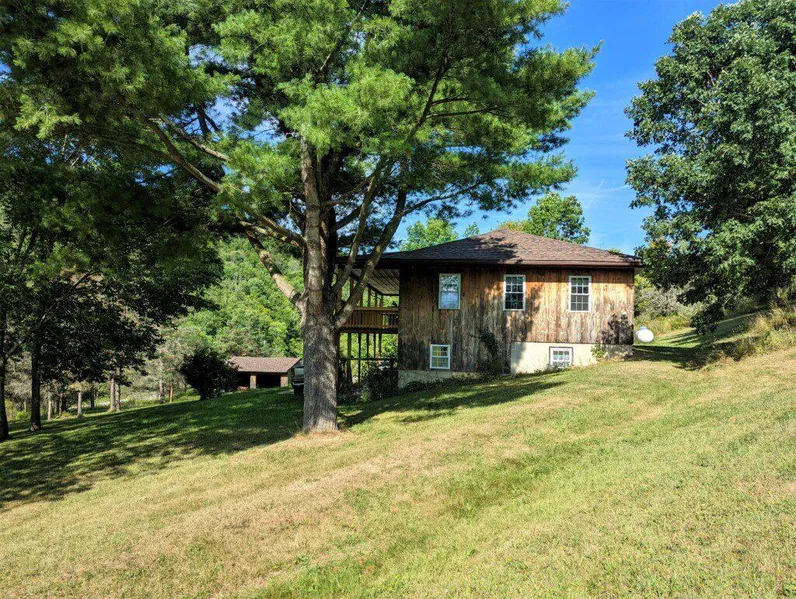 A great mix of land consisting of a wooded hillside and open meadows littered with apple and pear trees. All types of wildlife frequent the property, and it is not unusual to have deer in the yard. A pond is located just behind the house, and there is a small creek located across the road. Just below the house is a large fenced-in area that has peach trees and would make a perfect space for gardening. There is also a detached garage for additional storage or parking.