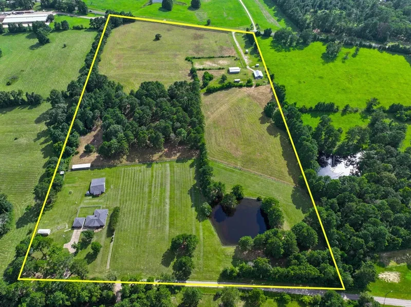 Beautiful setting in a prime location with paved road frontage along Highway 75 South and Bakers Lane. Peaceful area with easy access to I-45. Excellent prospect for commercial, industrial, residential, leisure ranch or more!Nice 3-bedroom 2.5 bath brick home with detached 2-car garage along with a 3-bedroom 1 bath guest house. Both homes have access to a 22K Generac generator if needed during power outages. Property is gently rolling pastureland with a select wooded area for diversity. Fenced/cross-fenced, horse barns with stalls and feed room, riding arena, two water wells & septic systems and a serene fishing pond stocked with catfish, large mouth bass and sun perch. Don't miss out on this rare opportunity!