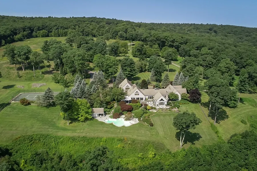 Set apart by its extraordinary scope, beauty, and privacy, this property stretches across 320 acres of idyllic land in the Berkshire Hills, presiding over a mountaintop realm in the midst of vast rolling woodlands and open meadows which provide the setting for its various residences and comprehensive equestrian facilities. This one-of-a-kind estate creates a gathering place to enjoy the relaxation and sporting life of this worlds-away natural paradise, glorious in every New England season. Winding its way through the sylvan landscape, highlighted by a tranquil pond, a mile-long drive arrives at the mountaintop main residence, designed by noted architect Milton Klein as a striking modern adaptation of the traditional farmhouse. Beautiful terraces and gardens, a naturalistic pool with waterfalls and cabana, and a tennis court are featured on the gorgeous park-like grounds designed by renowned landscape architect Armand Benedek, who collaborated on the gardens at Kykuit, the Rockefeller family's Hudson River Valley estate. From outdoors and inside the home, with its generous spans of glass, breathtaking long-range vistas unfold in all directions, reaching Great Barrington to the east, Mount Washington to the south, and west to the Taconic Mountains of New York State.